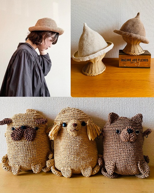 | オススメ商品 | コットンや麻素材のとんがり帽子、ハット。コットンの糸で作った大人、子ども用のチュニック。動物の形のリュックやショルダーバック等 |
