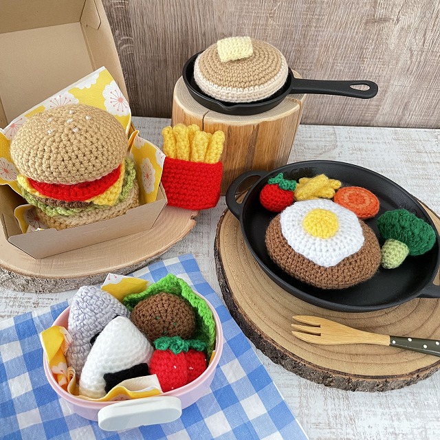 | オススメ商品のこだわりポイント | ひとつひとつ全て手編みで作っています。お子さまにはもちろん、大人の方にも好評な編みままごとや、赤ちゃんの小さな足を優しく包むベビーシューズ、ほっこり温かみのある鏡餅やコースターなどの雑貨プレゼントにもおすすめです♡ |