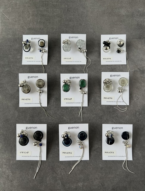 | オススメ商品のこだわりポイント | 色々なデザインのヴィンテージボタンと天然石のアシンメトリーイヤーアクセサリー |