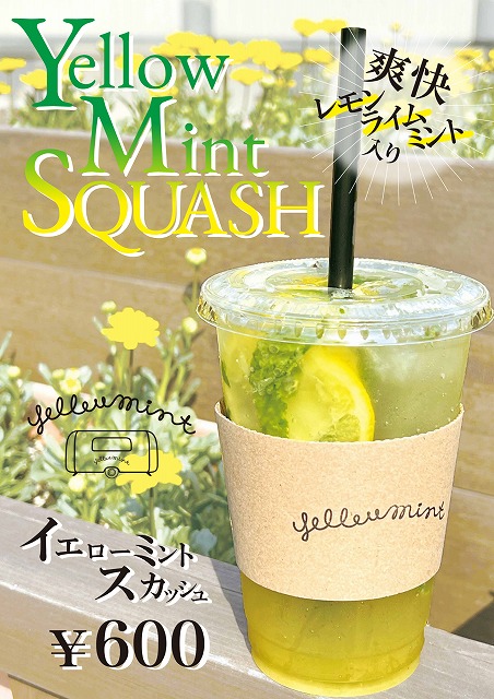 当店では、爽やかなミントとレモンの組み合わせが特徴的なイエローミントスカッシュを販売しています。可愛いドリンクとキッチンカーで皆さんのご来店をお待ちしております。