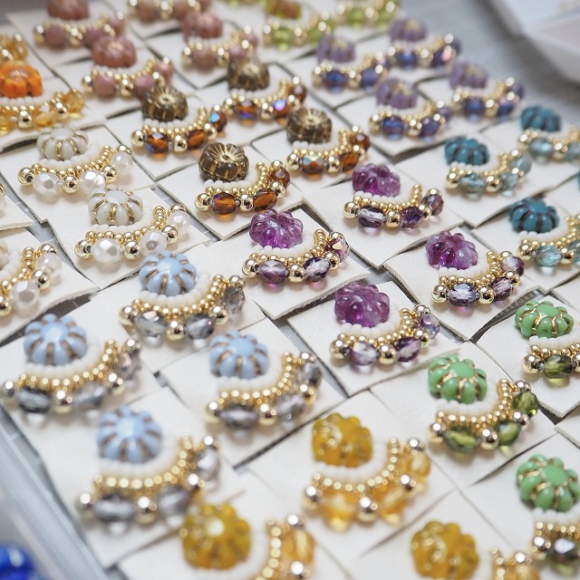 | オススメ商品のこだわりポイント | ビーズや刺繍リボンを使った軽くて着け心地の良い耳飾りです。毎日のコーデに彩りを添えるデザインを心がけています。 |