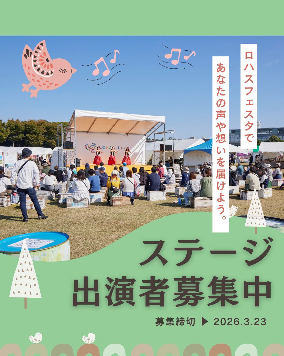 ロハスフェスタ万博では今回、ステージにご出演いただける方を募集いたします!