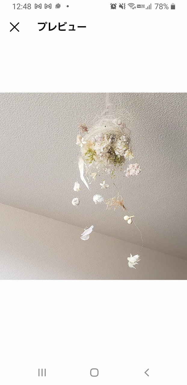 | オススメ商品のこだわりポイント | 空間のアクセントになるモビールブーケとしてもお使いいただけます |