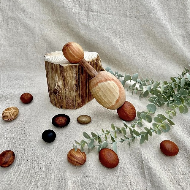 | オススメ商品のこだわりポイント | 木の温もりを大切に、ひとつひとつ丁寧な手作業にて仕上げた一点もの。数量に限りがございます。マッサージローラーやインテリアとしてもお使いいただける癒しの逸品。CORO CORO_ruuロゴ付き。皆様とのご縁を心よりお待ちしております。 |