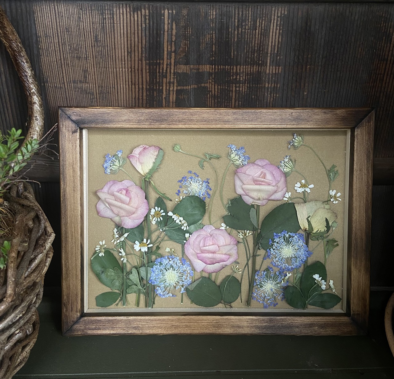 押し花を使った作品を中心に観葉植物や季節のお花の寄せ植え、インテリア雑貨などなど…忙しい毎日の中にホッとするひと時を感じていただける様な作品を制作しています。是非お立ち寄り下さい!