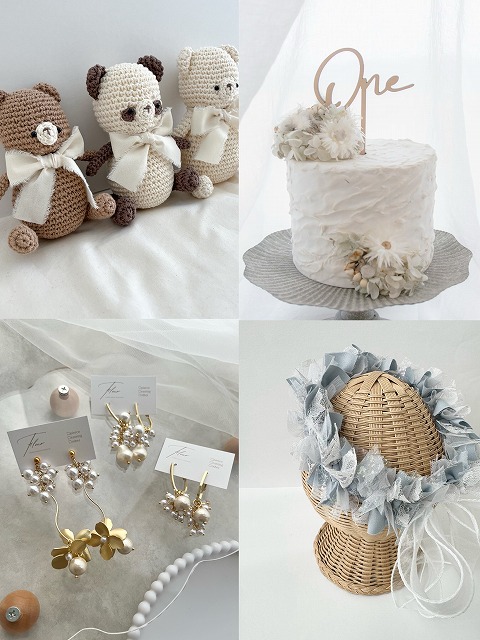 | オススメ商品のこだわりポイント | コットン100%の赤ちゃんに優しいベビーボンネット、一枚一枚手書きで制作している名入れタペストリー、お部屋の目印につけるだけで素敵空間にるルームサイン、様々なアイテムで叶う親子お揃いアクセサリー |