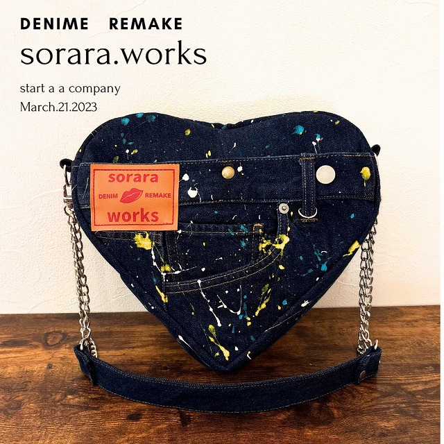 オススメ商品のこだわりポイント | デニムリメイクのバッグは沢山ありますがハートの形は中々ない上にオリジナルのペイントを施したり、個性的な生地との組み合わせで唯一無二のバッグです。 |