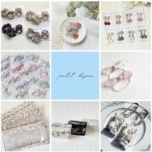Babyからおとなまでつかえるヘアアクセサリーや布小物を制作しています。姉妹や親子でのお揃いなどして毎日を楽しく過ごせますように♡♡布小物ではあったら便利なアイテムをご用意していますので是非お手にとってご覧ください♫