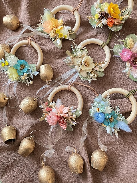 | オススメ商品のこだわりポイント | 色鮮やかなお花とチリンと綺麗な音が鳴るベルオーナメント。他にはないベルチャームは人気商品の一つです。 |