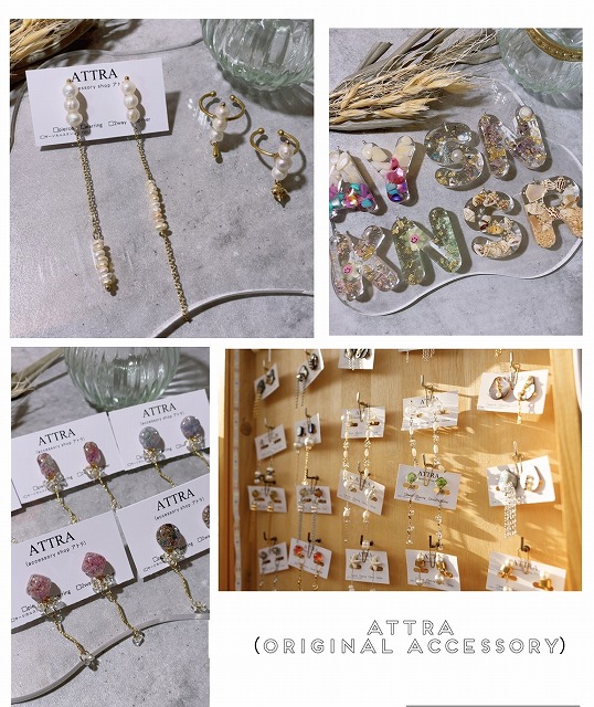 世界に1つのaccessoryを。ATTRAの作品は、全て1から手作りになりますたくさんの方がお手にとり、長くご使用頂けるよう、金具など全て、ステンレス製を使用。アクセサリー関係からキーホルダーなど、たくさんの商品をご用意してお待ちしております。