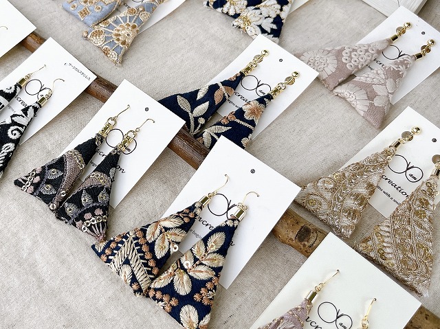 こだわりのインド刺繍を使用して作るアクセサリーとヘアアイテムをご用意。お好みのデザインとアイテムを是非見つけにお立ち寄りください♪