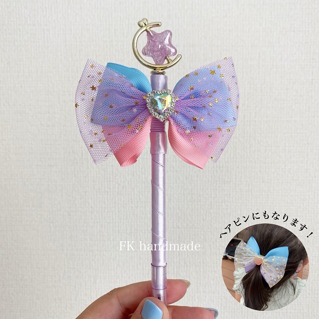 | オススメ商品のこだわりポイント | 子供が大好きな「ステッキ」を大人目線で二次利用できるようにしました!リボン部分は簡単に外せる仕様でヘアピンに!ステッキ部分はボールペンでできています!二児の母目線の作品ですので、ママにも納得していただけると嬉しいです☆ |