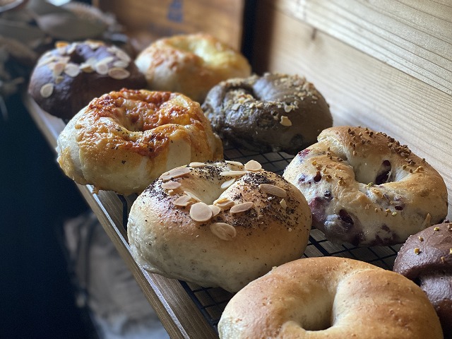 米粉入りの北海道産小麦ベーグル。ひとつひとつ丁寧に焼き上げております。フィリングもたっぷり、ボリューム満点です。もちもち食感をぜひお楽しみください。