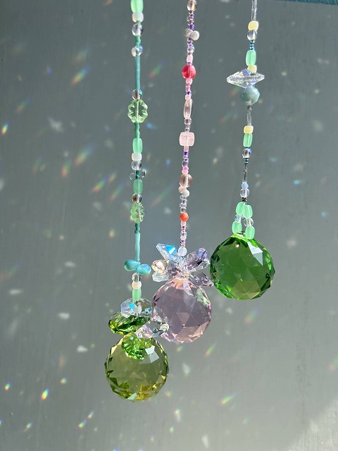 | ワークショップ | サンキャッチャーとアクセサリー/ガラスビーズをつないで作るサンキャッチャー自分の腕のサイズでオーダーメイド出来るパールのブレスレット/15分/1300円~ |