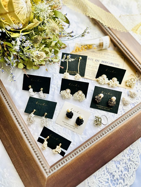 一針一針刺繍やかぎ針で編み込み、丁寧に施した大人アクセサリーを制作しています。日常がパッと明るくなるようなアクセサリーを目指しいます。