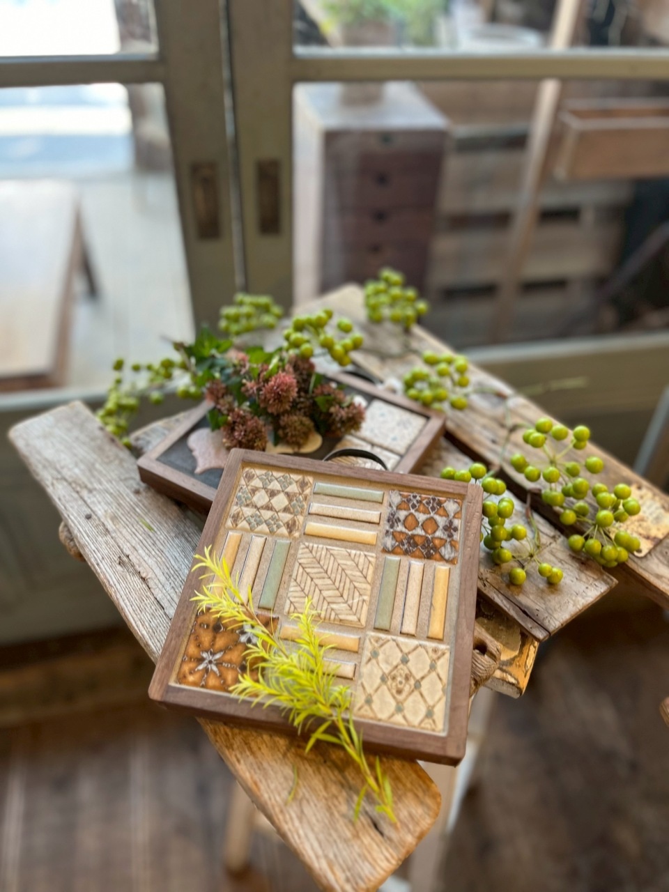 | オススメ商品 | レトロタイルを使ったトレー、モルタルデコ作品、ドライの花材を使ったキャンドル |
