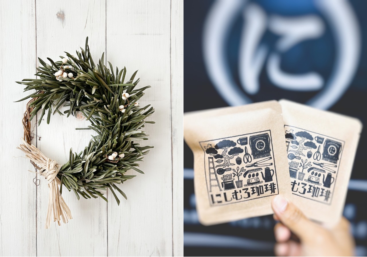 | オススメ商品のこだわりポイント | ・剪定されたオリーブの枝を、リースにアップサイクルしました。環境にやさしい素材で植物が持つ本来の美しさ・癒しをお届けしています。・ペルーで日本人の髙橋さんが農薬も化学肥料も使わずに大切に育てられた豆を手焙煎したコーヒーです。 |