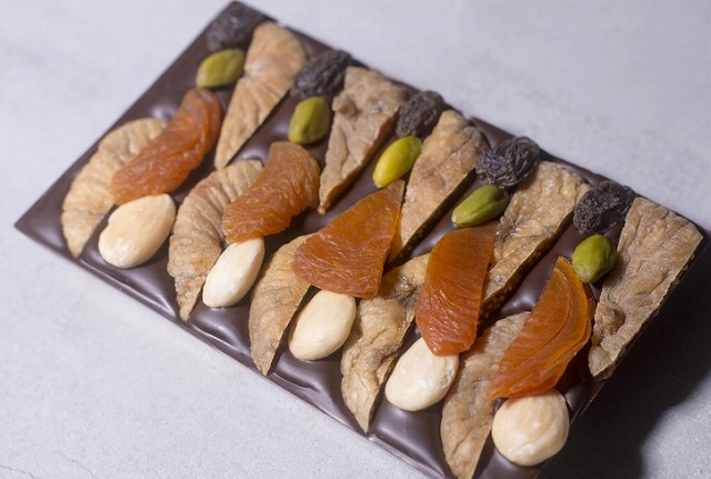 | オススメ商品のこだわりポイント | chocolatier KAITO創業時からある当店を代表するタブレットチョコレート。72%のベネズエラ産ビターチョコレートにそれぞれ厳撰したイチジク、アプリコット、レーズン、アーモンド、ピスタチオをぎっしり敷き詰めたタブレットです。 |
