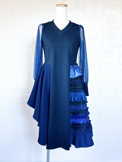 | オススメ商品のこだわりポイント | かたやシンプルなフレアスカート、かたや鮮やかなフリルをあしらった可愛いスカートのアシンメトリーに。トップス側はシワになりにくい生地とぽわん袖でシンプルに。華やかさお淑やかさを両立できるワンピース。既製品では味わえない、あなたの特別にどうぞ。 |
