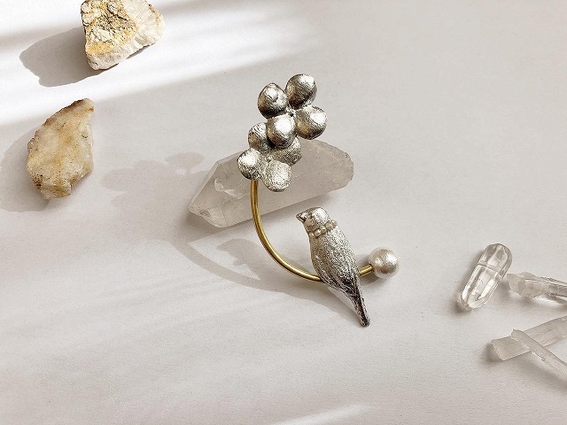 | オススメ商品のこだわりポイント | 身近な自然界のもつ美しさ儚さ・四季のうつろいを装身具として表現しています。ピューターを溶かして鋳造し叩いて曲げて、そこに真鍮や天然石など彫金も織り交ぜながら1つ1つ丁寧に仕上げています。 |