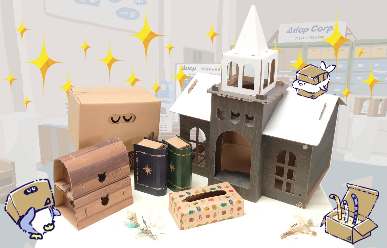 | オススメ商品のこだわりポイント | 出展商品は全て素材が段ボールであることにこだわっています。段ボールはリサイクル率90%以上のため、地球環境保護にも貢献する素材です。 |