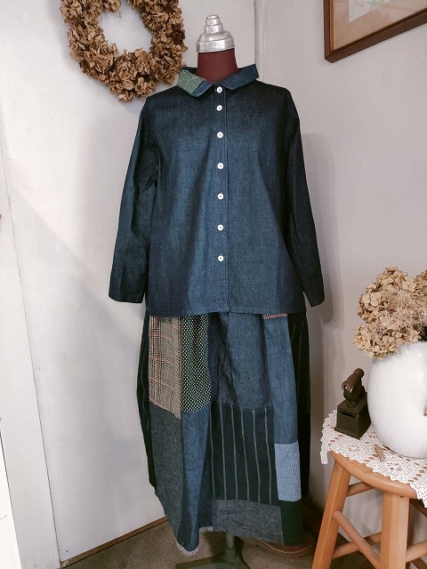 製作途中で出てしまう端布をゴミにするのではなく、パッチワークにして世界で1つのオリジナルのお洋服になります。