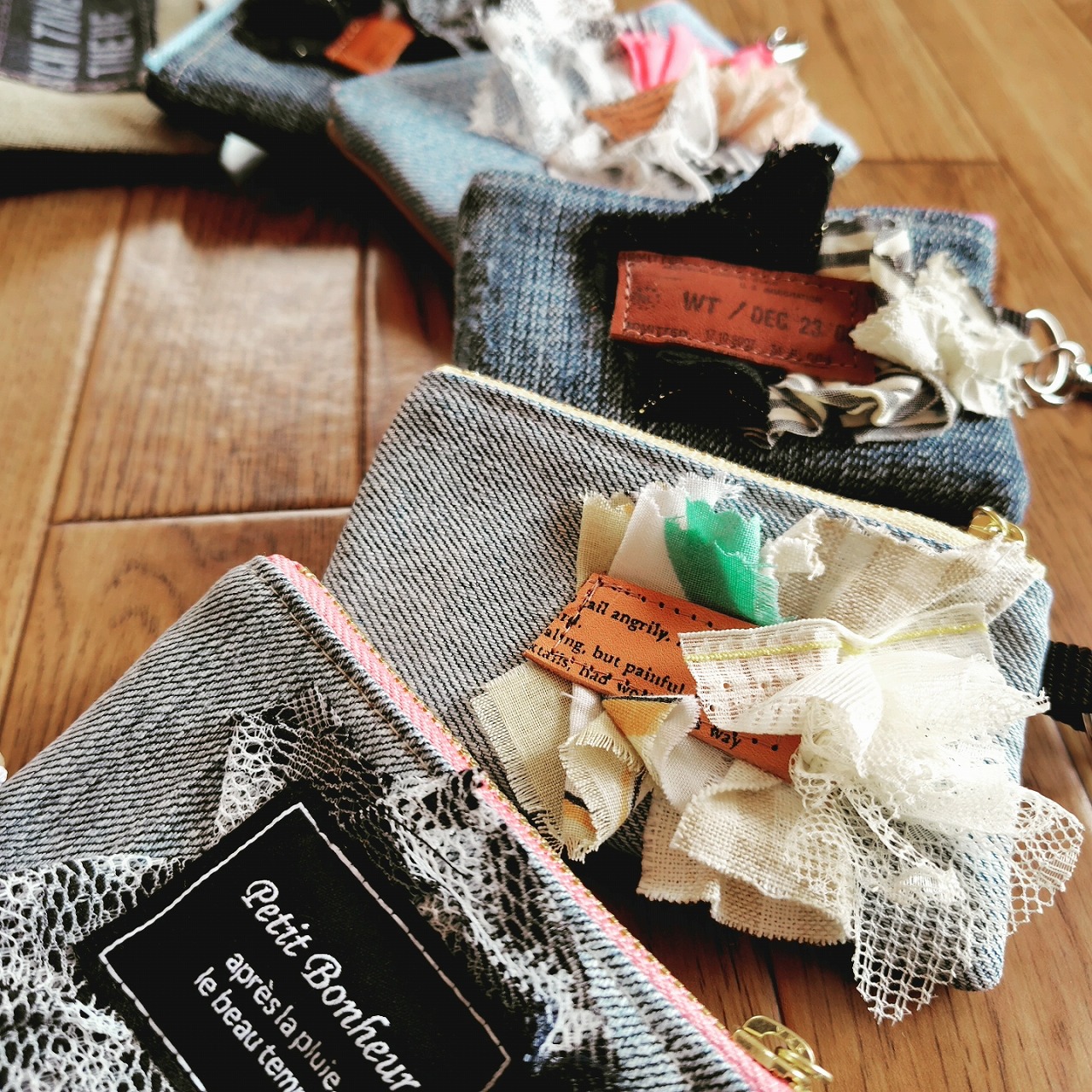 カジュアルなデニムに、1つひとつ表情が異なるコラージュで可愛さをプラスしました。使い込むほどになじんでゆくデニムならではの変化もお楽しみください。