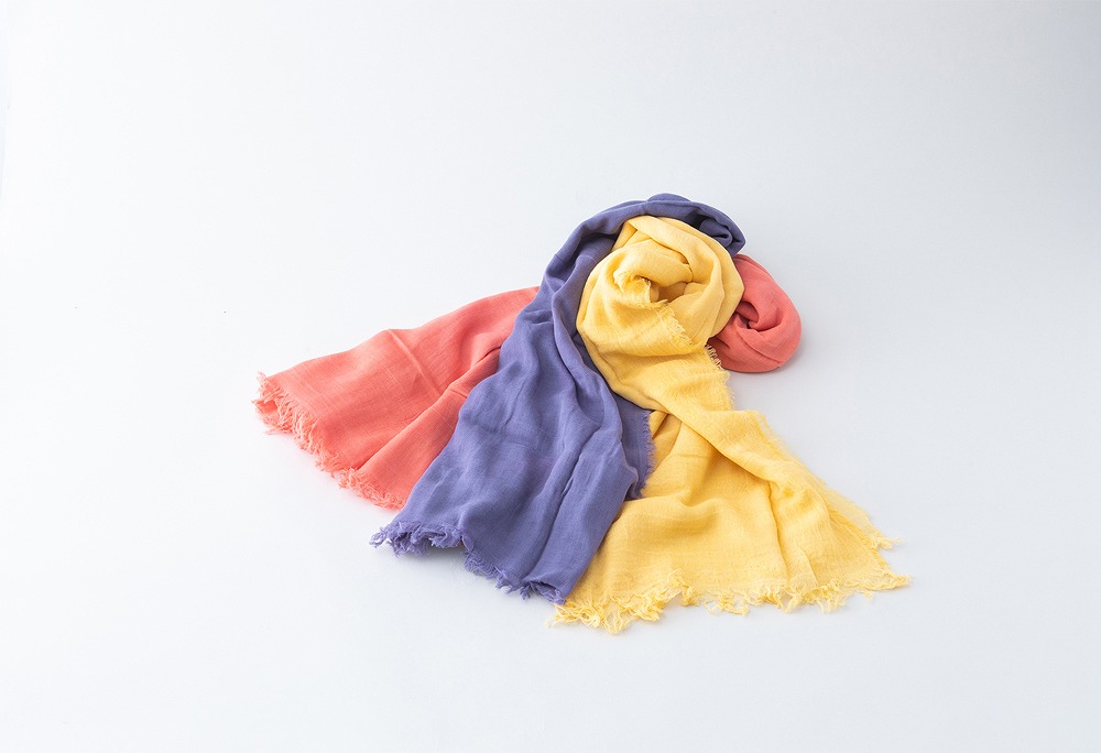 | オススメ商品のこだわりポイント | 天然の材料を染料に用いて染める地球環境と人にやさしい『新万葉染め』で染めたサスティナブルなストール。植物が持つ自然由来の鮮やかな色彩を楽しんでいただけ、愛知県の知多半島で織られる柔らかで肌触りの良いストールは巻かれる方をやさしく包みます。 |