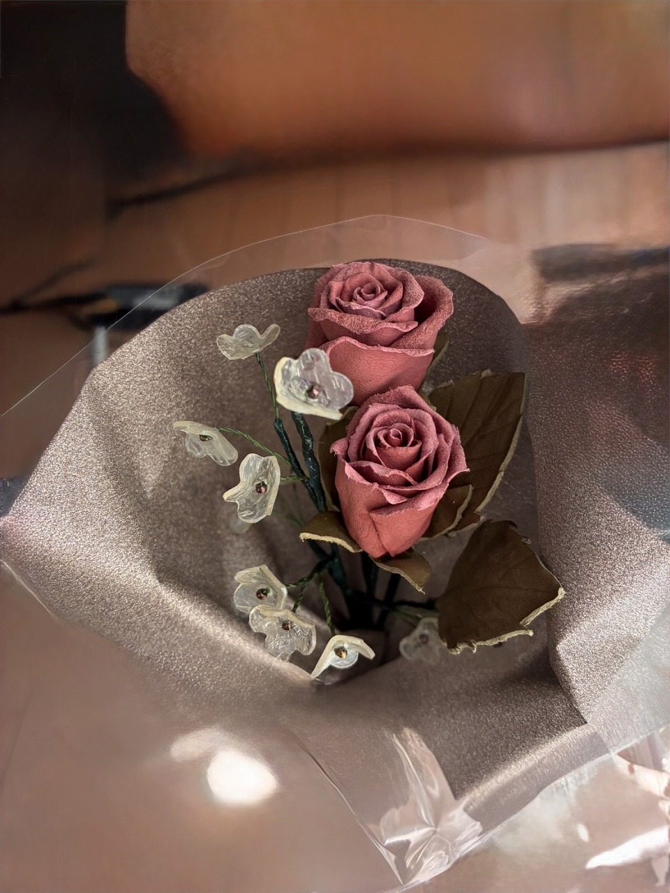 手裁ち手縫いの革モノ。枯れない革薔薇。