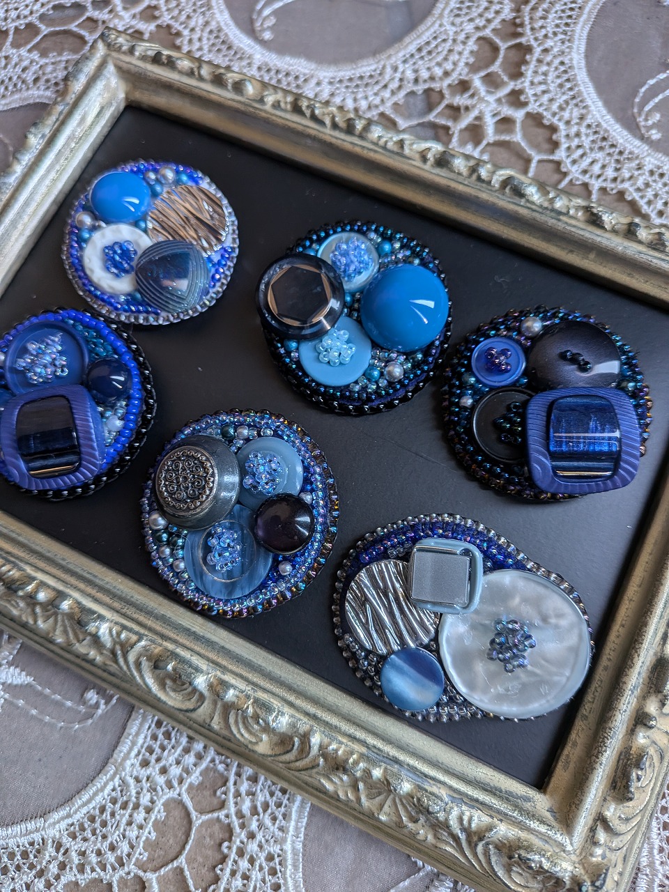 ボタンをビーズやスパンコールでアレンジしてブローチに仕上げました。