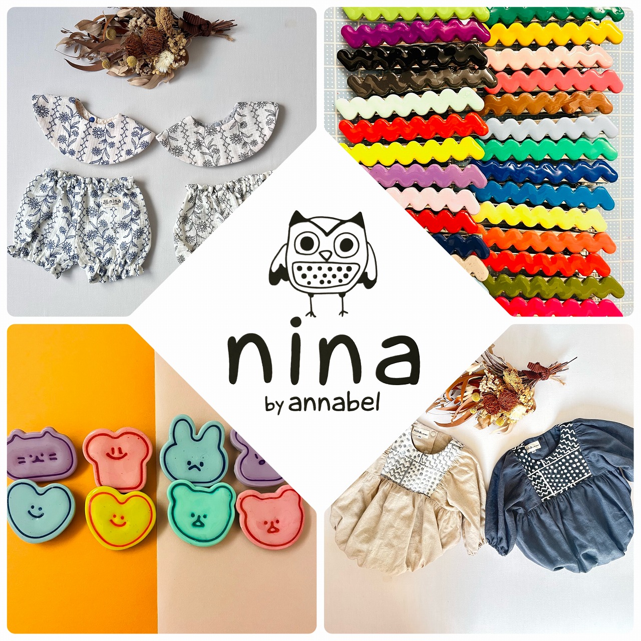 nina by annabelです!姉妹で活動しています。姉が、誰とも被らない、付けると元気になれるポリマークレイアクセサリー妹が、大人も着せやすく、子供も着やすいベビー服、子供服を作っています!ぜひ、お立ち寄りください。