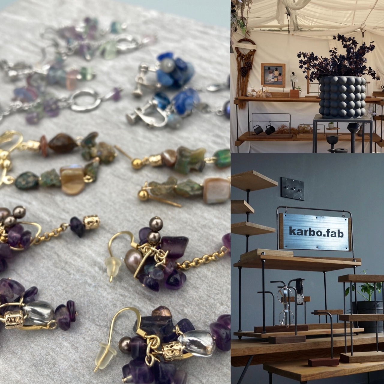 mosuca〈モスカ〉のアクセサリーは天然石やパールを使った普通じゃ物足りない大人の為のアクセサリー。karbo.fab 〈カルボファブ〉は木とアイアンを使ったラスティックモダンインテリアディスプレー雑貨。拘りの空間ごとお楽しみくださいませ