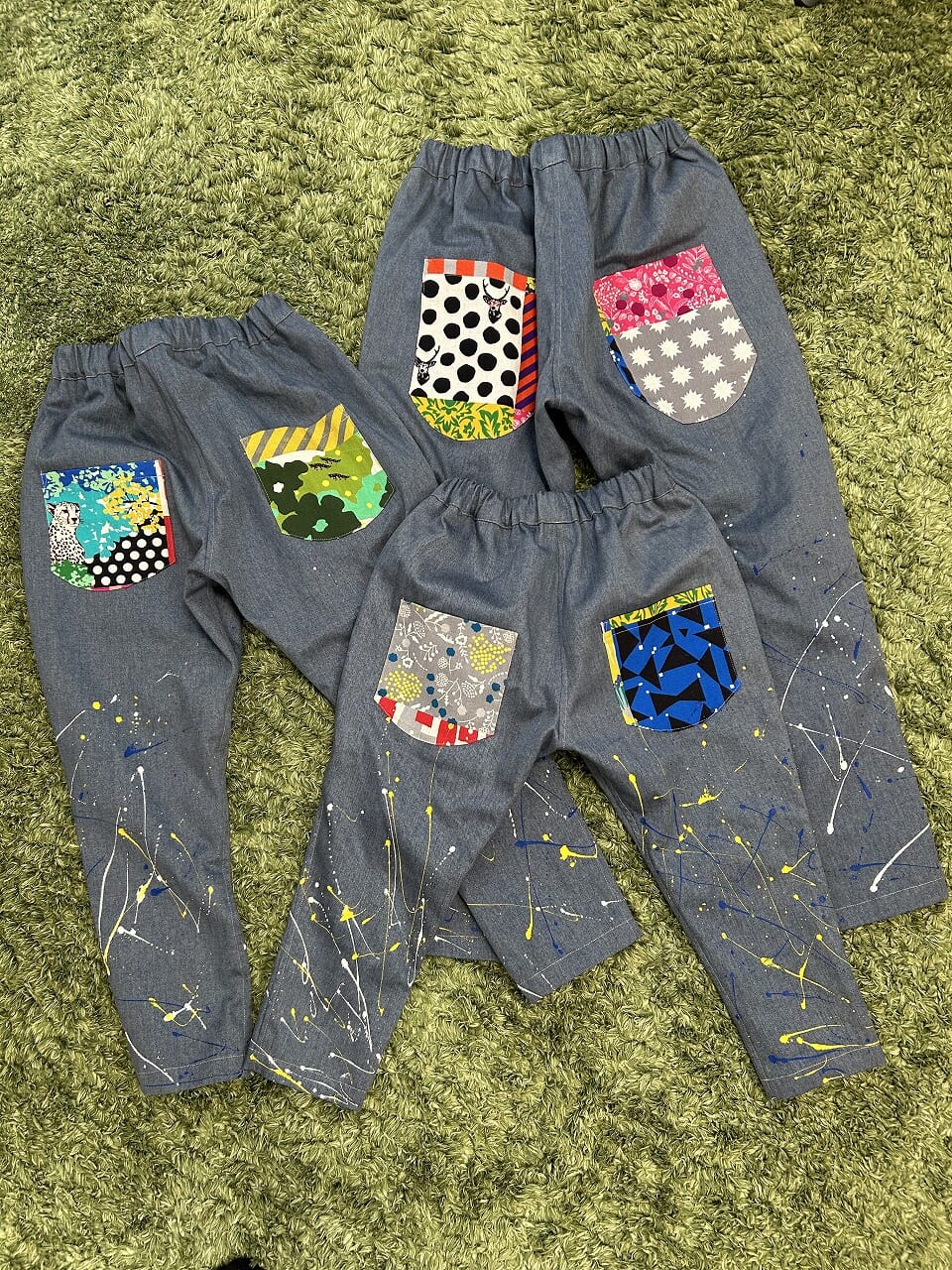 | オススメ商品のこだわりポイント | カラフル柄ポケットと、ペイントがポイントのサルエルパンツや、2柄を使用した組み合わせのサルエルパンツなど、大人と子供がお揃いコーディネート出来ます。 |