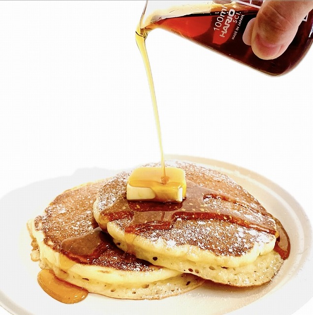 | オススメ商品のこだわりポイント | プレミアムパンケーキは、日本地元兵庫県産の素材を使用し、自家製バターミルクを加えて食感と味を追求しました。注文をいただいてから、一枚一枚その場で焼き上げ、フランス産の発酵バター「エシレバター」やカナダ産のメイプルシロップをかけて提供します。 |