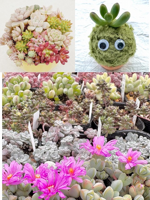 | オススメ商品 | 自家製多肉植物,使わなくなった陶器を使った寄植え,フェイク苔玉と多肉を使ったWS |
