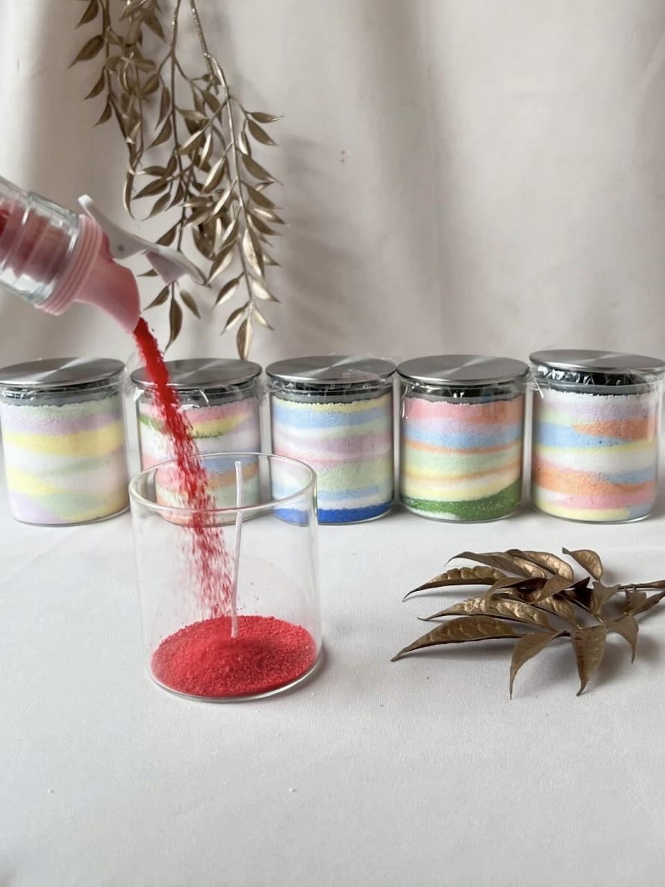 | オススメ商品のこだわりポイント | 砂の様なロウを好きなカラーで瓶に注ぎデザイン出来るキャンドルワークショップ火を灯しても外側が残るように出来ているのでデザインが残り非常時の明かりとしてご使用頂けます。 |