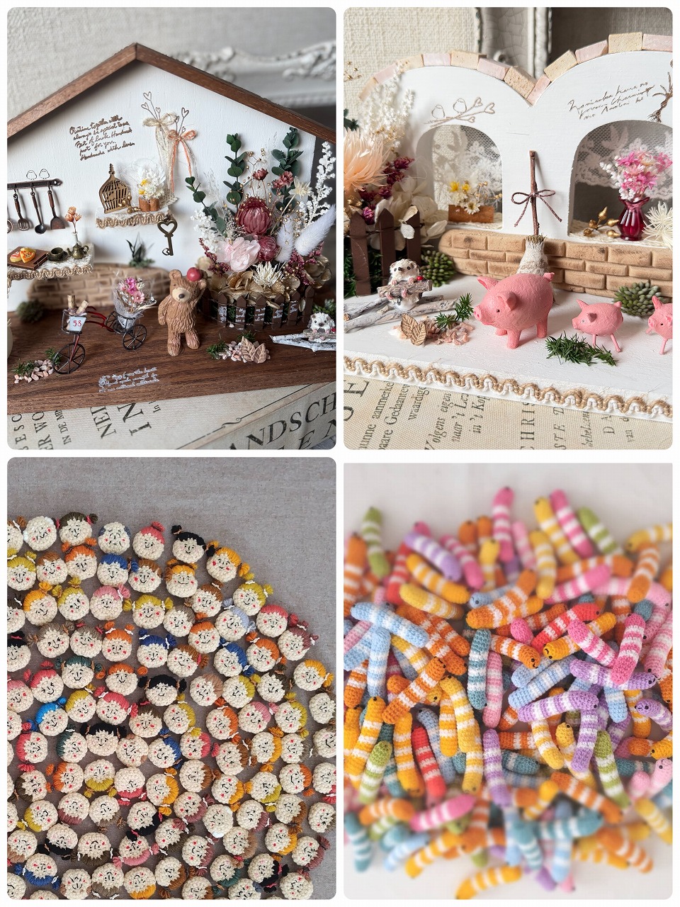 | オススメ商品のこだわりポイント | 一つ一つ丁寧に編み上げた編みぐるみはキュンとくるお気に入りに!お花をいっぱいあしらった雑貨は見ているだけで癒しの一つに…心くすぐる雑貨です。 |