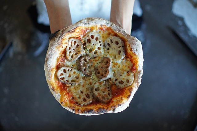 | オススメ商品のこだわりポイント | 徳島蓮根のシャキシャキ食感と、鶏そぼろの旨みをトマトソースが包み込む、野菜たっぷりの“和×石窯”ピッツァ。食べ応えも軽やか。 |