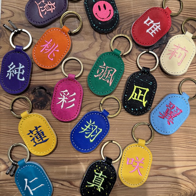 | オススメ商品 | グローブの端材を使い漢字の刺繍をしたキーリング |