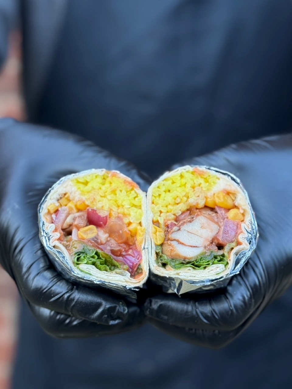 | オススメ商品のこだわりポイント | スパイスに漬け込んだ鶏肉をじっくり焼き上げ、野菜やチーズなどを一緒に巻いてます。ボリューム満点です! |