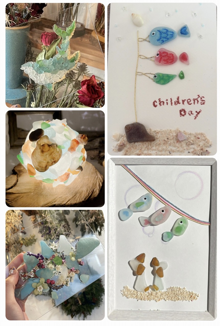 | オススメ商品のこだわりポイント | 海の宝石と呼ばれる程綺麗で可愛いシーグラスを使用して、シーグラスライトやアート作品を作って頂きます。 |