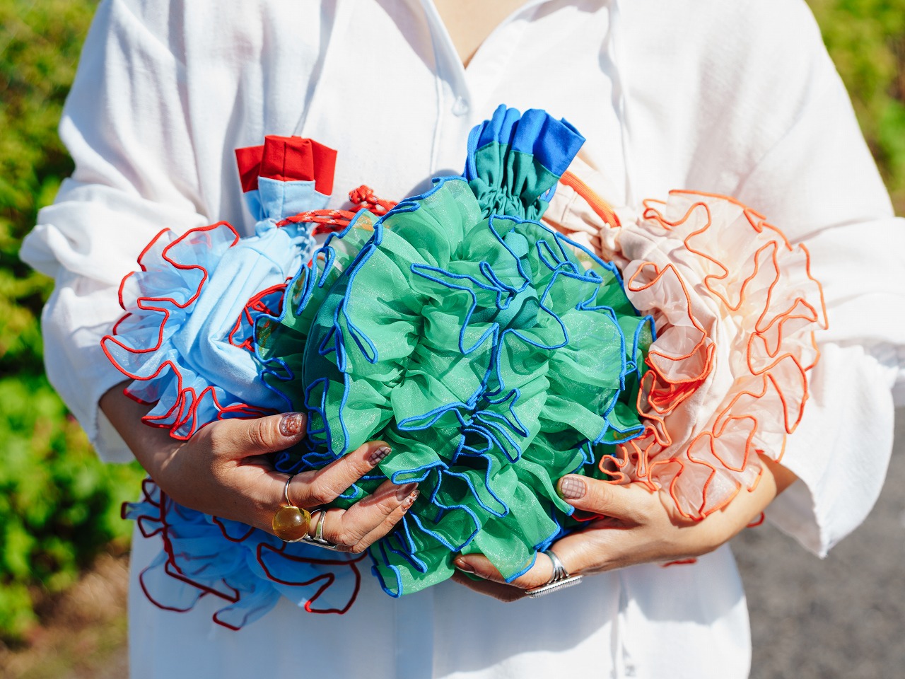 | オススメ商品のこだわりポイント | 繊細なオーガンジーが立体的なフリルが印象的な巾着バッグ。縁取りのラインが甘さを引き締め、装いのアクセントになります。軽やかな素材感ながら存在感があり、持つだけでコーディネートに奥行きをプラス。日常にも特別な日にも寄り添う一点です。 |