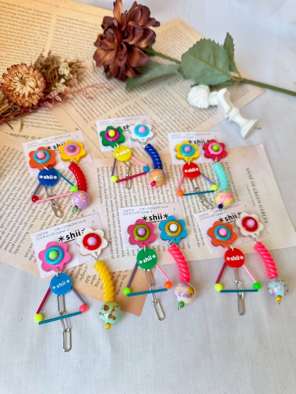 | オススメ商品のこだわりポイント | 形にもこだわって作っているので、着た時のワクワク感と、履き心地、綺麗なシルエットも気に入ってもらえると嬉しいです?またアシンメトリーなデザインが多く、1つ1つのパーツから手作りしているカラフルなアクセサリーも身につけるだけで元気になります♪ |