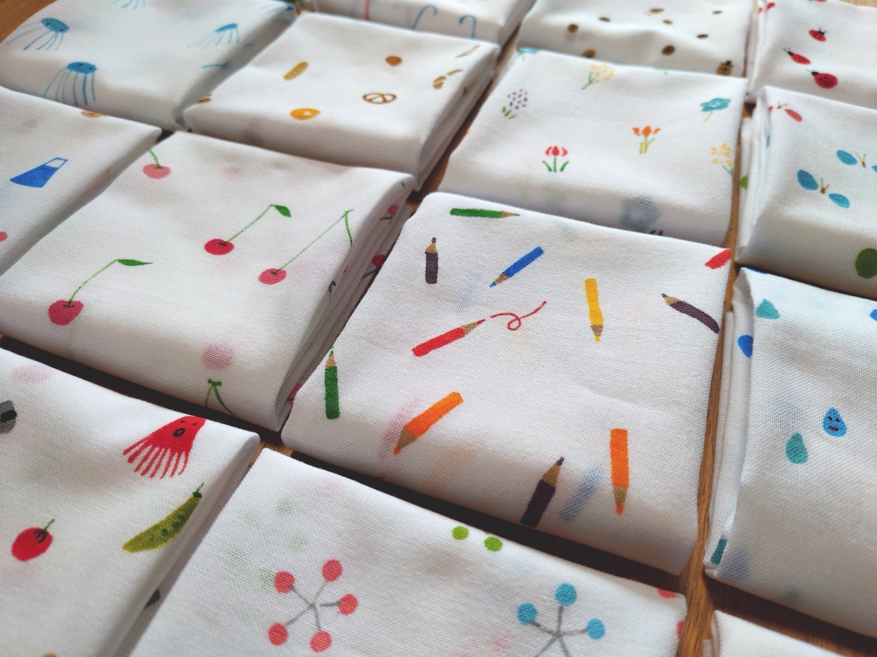 手ぬぐいたちを中心に、布のものたちもたくさん連れていく予定です。ひとつひとつ個性があります。じっくりご覧いただけたら嬉しいです。