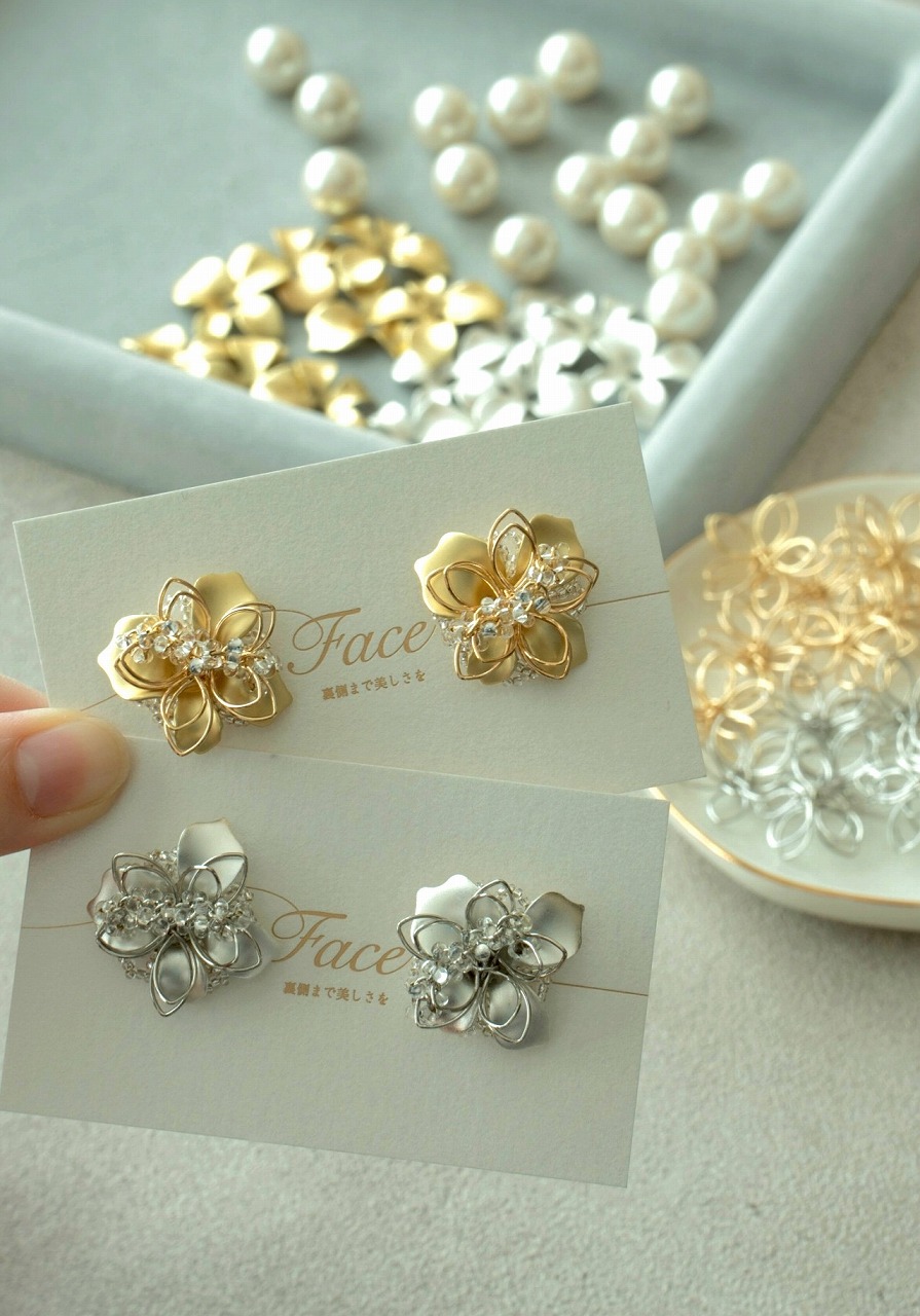 | オススメ商品のこだわりポイント | 表だけでなく裏側まで花びらデザインにこだわり、どの角度から見ても美しい仕上がりに。上品なパールキャッチ付きで、後ろ姿まで華やかに彩ります。 |