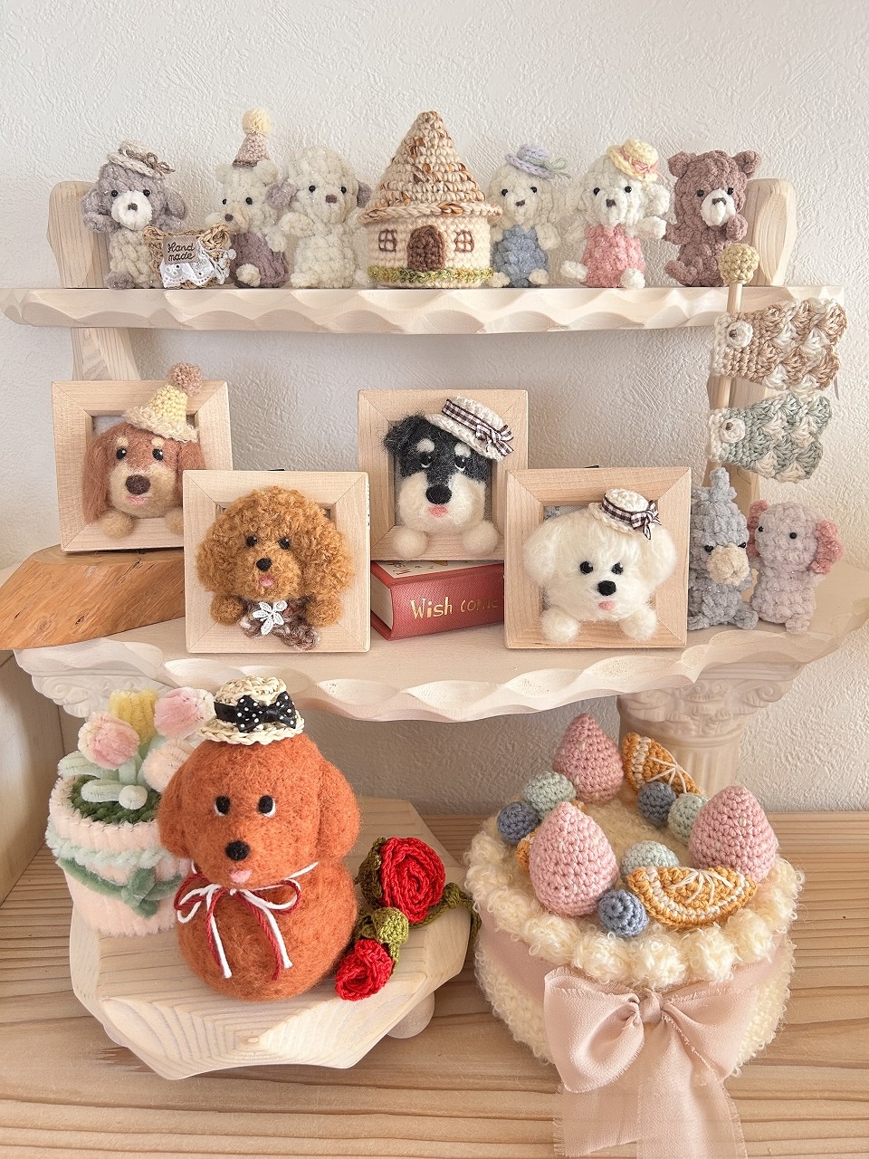 | オススメ商品のこだわりポイント | 身内7人で制作活動をしており、編み物、布小物、木工、ドライフラワー、ニードル作品など幅広い商品展開となっております。お子様から大人、ペットまでお洒落を楽しめ、他にはない”かわいい”を詰め込んだお店です。 |