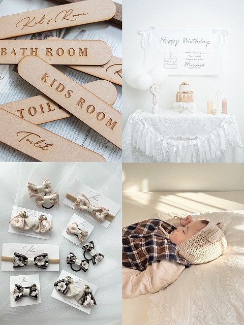 | オススメ商品のこだわりポイント | コットン100%の赤ちゃんに優しいベビーボンネット、一枚一枚手書きで制作している名入れタペストリー、お部屋の目印につけるだけで素敵空間にるルームサイン、様々なアイテムで叶う親子お揃いアクセサリー |