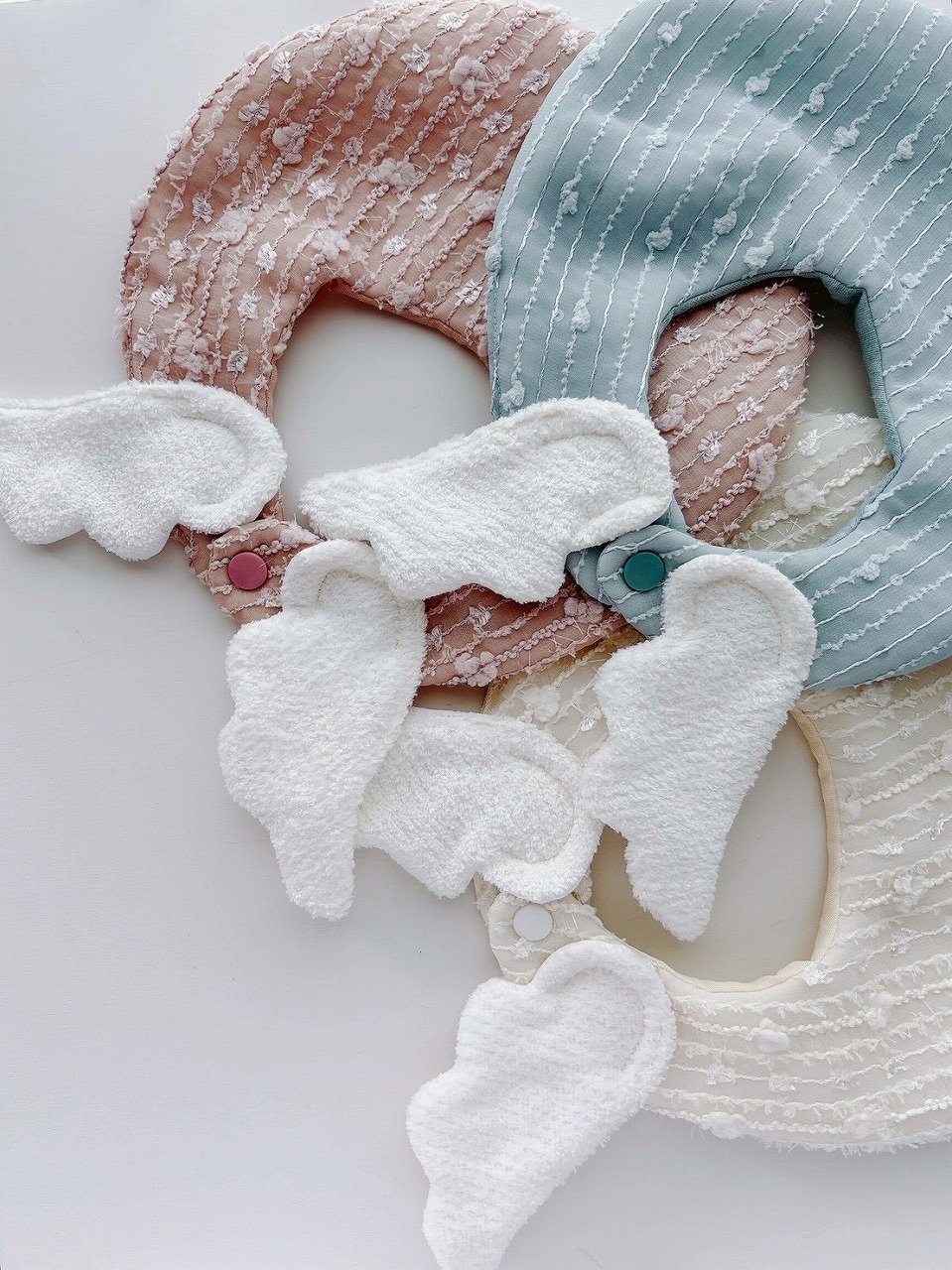 | オススメ商品のこだわりポイント | 業務用刺繍機で自作した唯一無二の羽や耳パーツが主役。繊細なディテールと、赤ちゃんの愛らしさを引き立てる独創的なデザインが魅力です。ワンピースやロンパースとのセットアップも可能。世界に通用するクオリティと、手仕事の温もりを大切にしています。 |