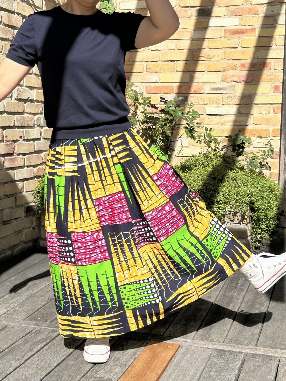 | オススメ商品のこだわりポイント | 鮮やかなアフリカ布を活かし、裁断から心を込めて仕立てる一点もの。柄の個性を大切にしながら制作しています。装うたびに気分が上がる大人服と小物です。 |