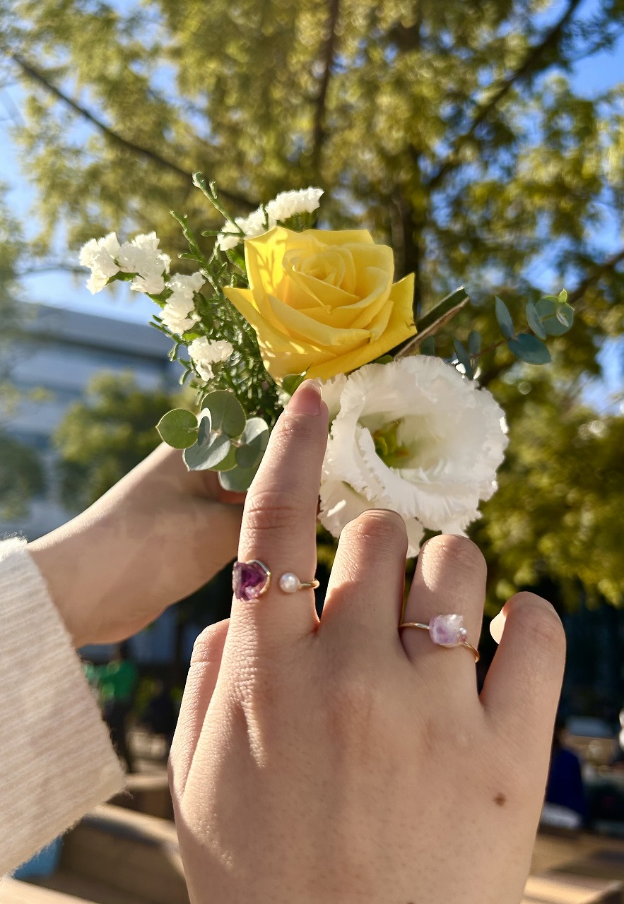 | オススメ商品のこだわりポイント | それぞれ異なる色・質感・形をもつ天然石の個性を活かし、石の中に小さなお花を閉じ込めて仕立てています。同じものは二つとない、あなただけの特別なリング。自然のやさしさと、お花の美しさを指先に。 |